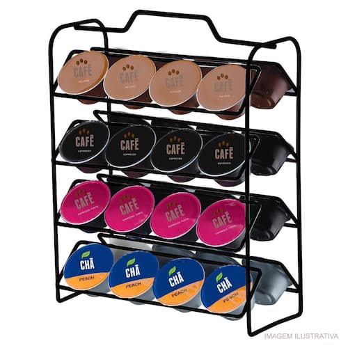 O Suporte Para Cápsulas de Café Dolce Gusto Future Preto Fosco permite a separação dos sabores e possui capacidade para comportar 32 cápsulas Dolce Gusto. Ideal para ficar no cantinho do café, levando organização e praticidade para esse espaço. Acabamento liso e fosco. A pintura a pó aplicada na peça garante uma excelente cobertura protetiva contra corrosão e alta resistência ao impacto.