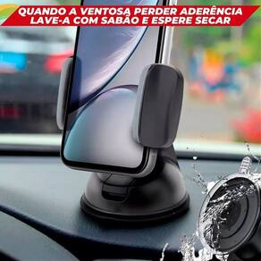 Suporte com rotação 360 graus, ventosa de silicone para fixação no painel, clipe flexível expansível até 90 mm de largura, design robusto, não deixa resíduos ou manchas.Vendido por LOJAS CARISMA UTILIDADES EIRELI e entregue por PontoFrio