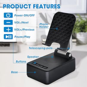 - Suporte com alto-falante Bluetooth: este suporte possui a versão Bluetooth 5.0 integrada, que pode conectar facilmente seu telefone/tablet para reproduzir música/vídeo, é a melhor escolha para você liberar suas mãos enquanto assiste a vídeos do seu telefone.