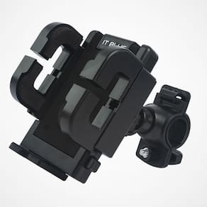 Estrutura em plástico ABS de alta resistência. Fixação prática e ajustável no guidão. Sistema de trava que impede o de se soltar durante o trajeto. Almofadas internas emborrachadas que protegem contra riscos e arranhões. Rotação 360 com articulação esférica, permitindo uso na vertical ou horizontal.