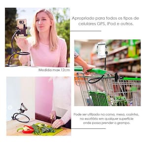 Apropriado para todos os tipos de celulares, GPS, IPod e de outros equipamentos e pode ser utilizado na cama, mesa, cozinha, no escritório e em Qualquer superfície onde possa prender o grampo.