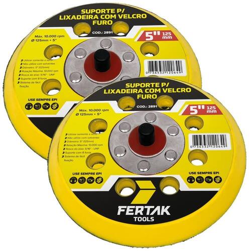 Diâmetro:125mm Material: Base resistente com camada aderente para discos de lixa Compatibilidade: Lixadeiras roto-orbitais de 125mm com sistema aderente Tipo de fixação: tecido adesivo