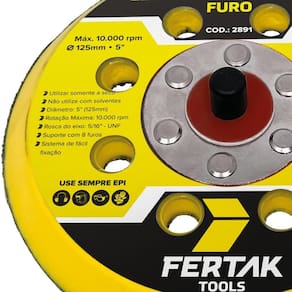 Fabricado com materiais resistentes e de alta qualidade, o suporte oferece durabilidade superior e excelente absorção de impactos. Seu design com 6 furos melhora a extração de poeira, reduzindo o acúmulo de resíduos e aumentando a vida útil tanto do suporte quanto do disco de lixa.