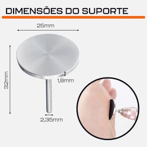 Suporte para Disco de Lixa Adesivo 25mm x 1,8mm Haste 2,35mm Profissional Dremax - Marca: Dremax - Referência: MD035 - Haste: 2,35mm - Diâmetro: 25mm - Espessura: 1,8mm grosso - Para uso com discos de lixa e esponjas adesivas não inclusas - Fabricado em aço inox - Resistente ao desgaste e durável - Indicado para todas as marcas de micro retíficas e mini lixadeiras com mandril ou pinça de 2.4mm como Dremel, Charbs, Einhell, Black+Decker, Dremax, Mondial, Vonder, Titanium, Western, Ingco, Gamma, Wesco, etc. - Garantia: 90 dias contra defeitos de fabricação A DREMAX é a primeira e única marca brasileira dedicada exclusivamente às micro retíficas, acessórios e acoplamentos para esta indispensável ferramenta. Seja para trabalhos de precisão, artesanato, modelagem ou reparos, a DREMAX tem o produto certo para você. Marca: Dremax