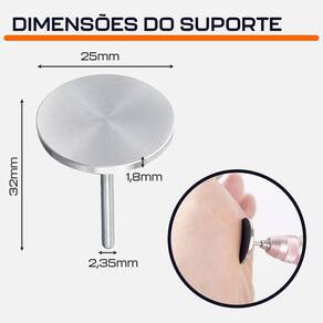 Suporte para Disco de Lixa Adesivo 25mm x 1,8mm Haste 2,35mm Profissional Dremax - Marca: Dremax - Referência: MD035 - Haste: 2,35mm - Diâmetro: 25mm - Espessura: 1,8mm grosso - Para uso com discos de lixa e esponjas adesivas não inclusas - Fabricado em aço inox - Resistente ao desgaste e durável - Indicado para todas as marcas de micro retíficas e mini lixadeiras com mandril ou pinça de 2.4mm como Dremel, Charbs, Einhell, Black+Decker, Dremax, Mondial, Vonder, Titanium, Western, Ingco, Gamma, Wesco, etc. - : 90 dias contra defeitos de fabricação A DREMAX é a primeira e única marca brasileira dedicada exclusivamente às micro retíficas, acessórios e acoplamentos para esta indispensável ferramenta. Seja para trabalhos de precisão, artesanato, modelagem ou reparos, a DREMAX tem o produto certo para você. Marca: Dremax Ean: 7734625985093