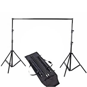 Kit para suporte de fundos infinitos, prático e de fácil montagem. Acompanha bolsa para transporte e é composto por 2 tripés e uma barra (composta por 4 partes interconectáveis) com aproximadamente 3 m de comprimento.