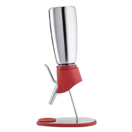 Suporte para garrafa isi Esteja pronto O Suporte para Garrafa iSi permite que você deixe sua Garrafa iSi em uma posição pronta para uso e assim garantir um manuseio rápido e fácil. Com este acessório, agitar entre cada dispensação não é necessário O suporte é projetado para os modelos: Isi Gourmet Whip Isi Thermo Whip Isi Cream Profi Whip É feito de aço inoxidável e silicone para aplicações quentes e frias. Benefícios: - Mantém a garrafa pronta e fácil para se manusear o tempo todo. - Mantém a garrafa de cabeça para baixo, assim a mistura de ingredientes e o gás permanece estável. - Não há necessidade de agitar entre cada uso. - Aço inoxidável e silicone - projetado para .