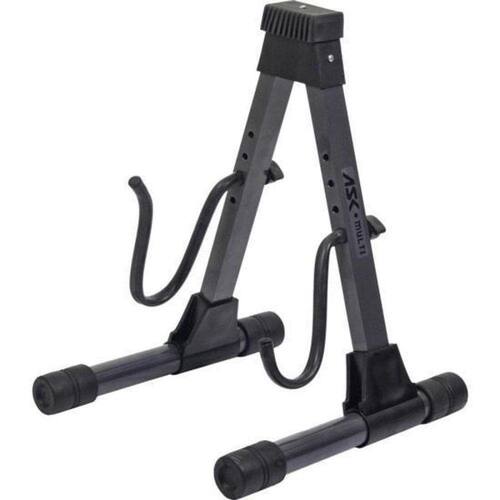 Suporte Para Guitarra/ Baixo SI101 ASK O Suporte Para Guitarra/ Baixo SI101 é um suporte multi funcional semi-profissional, com um acabamento em grafite metálico. Projetado para guitarras e baixos, possui um apoio móvel para o corpo do instrumento, permitindo um encaixe seguro e estável. Além disso, oferece uma regulagem independente de giro dos apoios, evitando qualquer pressão indesejada sobre os knobs ou o cabo do instrumento.