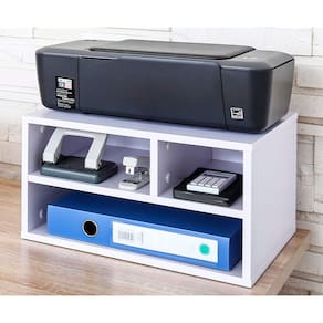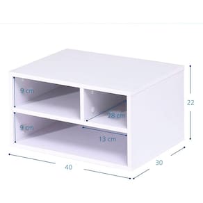 Dimensões 40 x 30 x 22 para as diferentes camadas, você também pode consultar a imagem mostrada. MATERIAL DURÁVEL: O organizador de mesa é feito de placa de MDF de alta qualidade, o que o torna forte o suficiente para colocar uma impressora ou monitor. MULTI-FUNÇÃO: Economize espaço e mantenha arrumado para casa / escritório. Vários compartimentos de armazenamento permitem que você coloque documentos, arquivos, livros, revistas, cartas ou outras pequenas coisas por categoria.
