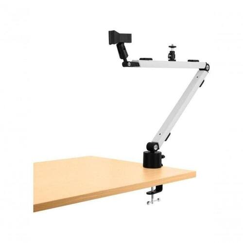 O Suporte Para Microfone Flexível Streamplify Mount Arm é uma solução de montagem versátil e conveniente para câmeras, luzes e outros dispositivos. Com seu design único de trilho de montagem de sapato frio, permite que você deslize e fixe seus dispositivos em qualquer lugar no Mount Arm, oferecendo praticidade e segurança. A flexibilidade é uma característica essencial deste suporte. Com um design totalmente ajustável, ele permite um giro de 360 e ajuste de ângulo de 210, fornecendo máxima liberdade para posicionar seus dispositivos no ponto ideal para conforto e ergonomia. O Mount Arm possui uma extensão de até 75cm tanto na vertical quanto na horizontal, permitindo que você cubra uma maior distância ou recue para liberar espaço. Sua construção robusta suporta uma carga máxima de 2,5 kg, garantindo durabilidade e estabilidade durante o uso. Além disso, o Mount Arm possui 4 clipes de gerenciamento de cabos ajustáveis, o que ajuda a manter seus cabos organizados. Com instalação fácil na lateral, ele não ocupa espaço no ambiente de trabalho, sendo fixado através de uma braçadeira de mesa com abertura máxima de 65 mm. O suporte também é compatível com smartphones, suportando dispositivos de até 100 mm de largura. E, caso você esteja preocupado com a compatibilidade do seu dispositivo, o Mount Arm vem com adaptadores de parafuso adicionais para suportar todos os dispositivos de 5/8, 3/8 e 1/4. Assim, você terá a certeza de poder montar o seu dispositivo com facilidade. Dimensões:75 cm de extensão Cor:Branco Material:Estrutura de aço com revestimento plástico ABS Pesquisa:suporte para microfone|suporte|mount arm|streamplify - Alcance máximo: 75 centímetros - Carga máxima de peso: 2,5 Kg - Espessura máxima da mesa: 65 milímetros - Rosca: 3/8 - Adaptador de parafuso: 5/8 e 1/4 - Gerenciamento de cabos: Sim - Acessórios: Clipe de microfone universal, adaptador de cabeça de esfera, suporte para smartphone e chave hexadecimal
