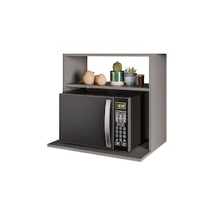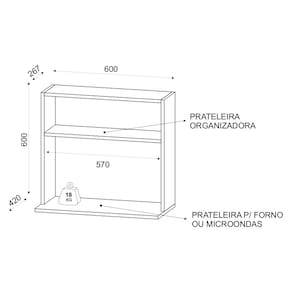 Características: Estrutura em MDP 15mm; Acabamento em melamina BP Possui 1 nicho superior para armazenar ou decorar; Possui 1 nicho maior ideal para colocar micro-ondas; Não possui fundo (facilita a passagem de fios); Peso suportado: 18 kg distribuídos;