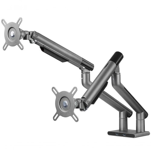 Suporte premium para 2 monitores com saídas USB, o Clipsmart Design 2 é o suporte ideal para você transformar sua mesa com mais conectividade, espaço de telas e elegância.