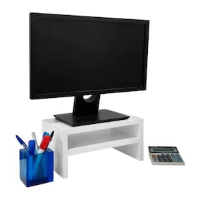 O Suporte para Monitor Base de Mesa Branco Madeira é ideal para quem busca organização, praticidade e conforto em seu dia a dia.