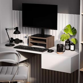 Projetado para organizar sua mesa, acomodando seu monitor de forma prática e segura, o suporte de monitor possui espaço interno para alocar papéis, materiais de escritório ou objetos de decoração, mantendo sua mesa linda e organizada.