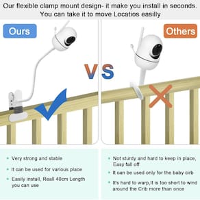 - Obtenha o ângulo de visão perfeito: - Você pode montar sua câmera de bebê em qualquer lugar, conecta-se facilmente ao berço do bebê e muito mais, pode ser movido ou ajustado.