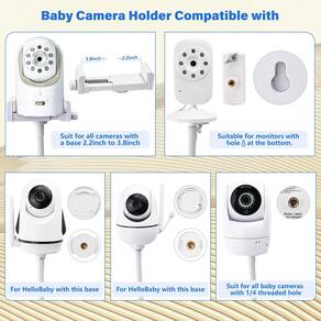 -?Alta compatibilidade?Compatível com Infant Optics DXR-8 Pro, Nanit Pro, Owlet Cam/Cam 2, Eufy, HelloBaby, Motorola, Vtimes, Baby Ganibs, OKAIDI, Arenti, Vtech, Blemil, Babysense e outras câmeras para bebês com orifício de rosca padrão de 1/4. (Nota: nem todos os monitores de bebês estão incluídos)