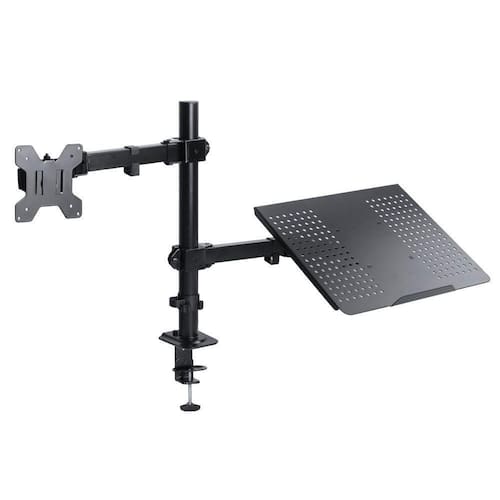 Suporte Para Monitor E Notebook Com Articulacao Dupla - Smn500 O Suporte Para Monitor e Notebook SM600 é a solução ideal para você alcançar a ergonomia perfeita e otimizar seu espaço de trabalho. Com um design robusto construído em metal e acabamento em revestimento em pó, este suporte garante durabilidade e sofisticação para sua mesa. A articulação dupla, com inclinação ajustável de 90, rotação da base de 360 e rotação do eixo de 360, permite o ajuste perfeito da posição do monitor ou notebook, adaptando-se a diferentes perspectivas e necessidades. Ele suporta monitores de 13 a 32 com padrão VESA 75x75 e 100x100mm, e com capacidade para aguentar até 10kg de peso, oferecendo amplo suporte para seus dispositivos.
