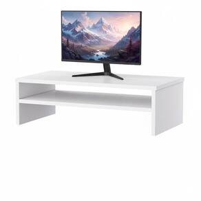 Este é um suporte de monitor minimalista e moderno, na cor branca, projetado para elevar o seu monitor a uma altura ergonômica ideal, proporcionando maior conforto visual e postural. Sua estrutura elegante e limpa, com linhas retas, se encaixa perfeitamente em qualquer ambiente contemporâneo. Apresenta um compartimento aberto na parte inferior, que é perfeito para armazenar teclados quando não estão em uso, livros, cadernos ou outros materiais de escritório, ajudando a manter sua mesa organizada e livre de desordem. A superfície superior é espaçosa o suficiente para acomodar o monitor de forma segura e estável, enquanto o design aberto contribui para uma sensação de leveza e amplitude no espaço de trabalho. Marca: Não Informado