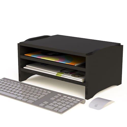 Suporte para Monitor Triplo Preto 9768 Stalo Suporte para monitor triplo fabricado em MDF. Pintura UV de alta qualidade. O suporte de monitor permite que o monitor fique na altura ideal ergonomicamente, prevenindo problemas de postura durante o trabalho. Além disso, o nichos são muito úteis para organização de documentos e otimização do espaço.Para escolher o suporte de monitor ideal, leve em consideração a altura da mesa, a altura do monitor e a altura do usuário.Medidas Montado (Altura x Largura x Profundidade): 17 x 35 x 24 cm