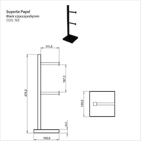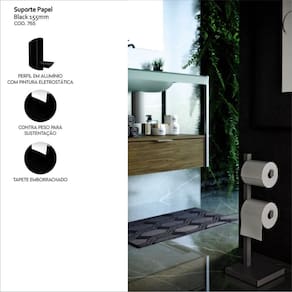 A base em alumínio com contrapeso de 1,18kg e tapete emborrachado proporciona **estabilidade e segurança**, evitando quedas e deslizamentos. Acabamento: Pintura Acompanha fixação: Não Altura: 47,9 cm Ambiente Principal: Banheiro Cor: Preto Cor do Produto: Preto Cor Predominante: Preto Escala de Brilho: Semi-Brilho Forma de Utilização: Vertical Itens Inclusos: 1 Suporte Largura: 15,5 cm Manual de Montagem e Instalação: https://cdn2.madeiramadeira.com.br/prd/cris-metal/2858348-1744802236-263824791-171078.pdf Marca: Cris Metal Material Principal: Alumínio Necessita Montagem: Não Origem do Produto: Nacional Peso: 1,175 kg Profundidade: 15,5 cm Recomendações de Uso, Manutenção e Limpeza: Não jogue água diretamente no móvel e NUNCAutilize água sanitária, produtos a base de amoníaco ou qualquer produto químico.