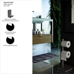 A base em alumínio com contrapeso de 1,18kg e tapete emborrachado proporciona **estabilidade e segurança**, evitando quedas e deslizamentos. Acabamento: Pintura Acompanha fixação: Não Altura: 47,9 cm Ambiente Principal: Banheiro Cor: Silver Cor do Produto: Silver Cor Predominante: Cinza Escala de Brilho: Semi-Brilho Forma de Utilização: Vertical Itens Inclusos: 1 Suporte Largura: 15,5 cm Manual de Montagem e Instalação: https://cdn2.madeiramadeira.com.br/prd/cris-metal/2858349-1744802237-260715759-171081.pdf Marca: Cris Metal Material Principal: Alumínio Necessita Montagem: Não Origem do Produto: Nacional Peso: 1,175 kg Profundidade: 15,5 cm Recomendações de Uso, Manutenção e Limpeza: Não jogue água diretamente no móvel e NUNCAutilize água sanitária, produtos a base de amoníaco ou qualquer produto químico.