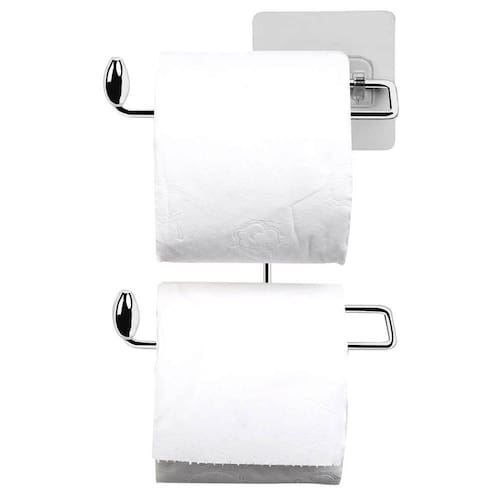 Suporte para Papel Higiênico Duplo Aço Cromado Fixação Adesiva Parede Utimil.