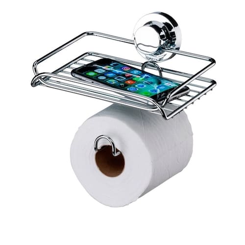 O Suporte para Papel Higiênico possui porta objetos para auxiliar na organização do seu banheiro. Você pode colocar lenços umedecidos, odorizador de ambiente e até mesmo o celular. Afinal, quem não gosta de trilha sonora em um banho relaxante ou de estar conectado em todas as horas.
