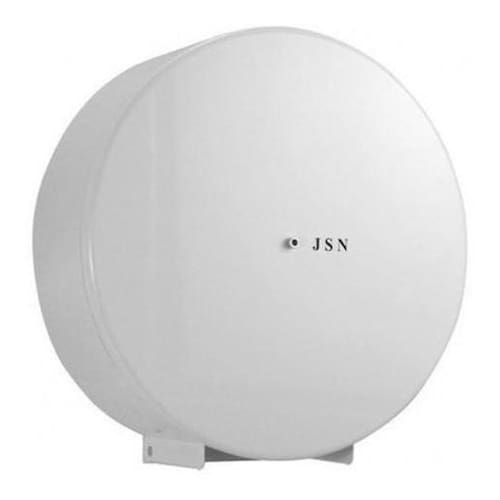 Produzido em chapa de aço carbono 1020 e acabamento pintura eletrostática branca epóxi . O sistema de fechamento é feito através de fechadura central tipo Allen, que mantém o produto trancado, evitando, assim o furto do papel, bem como a abertura indevida da tampa do suporte, possui visor para controle da reposição do papel.