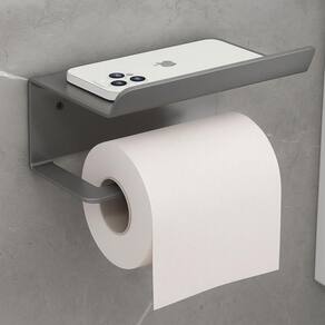 O Suporte Para Papel Higiênico Premium Com Apoio Para Objetos é um acessório moderno e multifuncional. Ele possui um design robusto em aço inoxidável com acabamento fosco, durabilidade e um visual elegante.