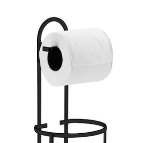 O Suporte para Papel Higiênico se adequa a sua necessidade: pode ser fixado na parede (kit de fixação incluso) ou colocado no chão. Tem a praticidade de acomodar 1 rolo em uso e 2 rolos de papel reserva.