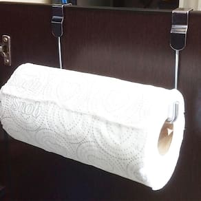 Suporte para Papel Toalha para Porta de Armário Porta Toalhas.Garantia: 90 dias / Peso: 220g / Cor: cinza / Ref: 334Dimensões: 25,5cm (C) x 10,5cm (L) x 12,5cm (A);Abertura do gancho: 2cm;Cuidados: Não lavar com materiais abrasivos.Material:- Aço cromado.