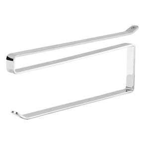 ESPECIFICAÇÕES TÉCNICA Acabamento: Cromado. Material: Barra chata de Alumínio maciço Largura da barra chata:1.6cm Espessura da barra chata: 3.4mm Medida da peça: Comprimento: 26cm Altura total: 10.8cm Altura para encaixe na prateleira: 2.1cm Altura entre encaixe da prateleira até a haste que encaixa o rolo: 7.4cm