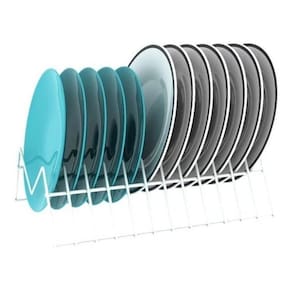 Dimensões: 17 x 7 x 24 cm largura x altura x profundidade Peso: 0.266 kg Material: aço carbono Cor: branco Suporta até: 12 pratos Pintura: eletrostática Ean: 7898590292003