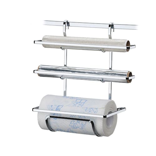 Com os locais determinados, os rolos de papel toalha, alumínio e PVC estarão sempre à mão na hora de preparar os alimentos. O Suporte também deixa mais espaço livre da bancada pois fica pendurado na barra fixada na parede.Pode ser usado em barras tubulares ou de perfil chato (Piatina).Além do tradicional tratamento superficial da Future - onde são aplicadas até 4 camadas de metal - os produtos são revestidos com uma camada extra do protetivo especial Rust Free, garantindo cores vivas e brilhantes, além de maior resistência contra ferrugem.MedidasProfundidade: 17cmLargura: 33cmAltura: 35cmPeso: 0,795 kgEspecificaçõesMatéria-prima: Aço CarbonoCor/Acabamento: CromadoLinha: Cucina PerfettaDicas de UsoPara limpeza periódica recomenda-se o uso de um pano macio, água e sabão neutro.Nunca utilize materiais abrasivos, lã de aço, esponjas ásperas, solventes ou produtos químicos corrosivos (cloro, água sanitária).Itens Inclusos1 Suporte de ParedeAtençãoBarra não inclusa. Ean: 7896497807801