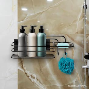 O Suporte para Shampoo e Sabonete Arthi Dupla Face Preto é uma solução elegante e funcional para organizar seu banheiro. Tem espaço suficiente para acondicionar o frasco de shampoos, condicionadores, cremes e também um local especial para o sabonete em barra, 2 ganchos para pendurar buchas ou lâminas de barbear.