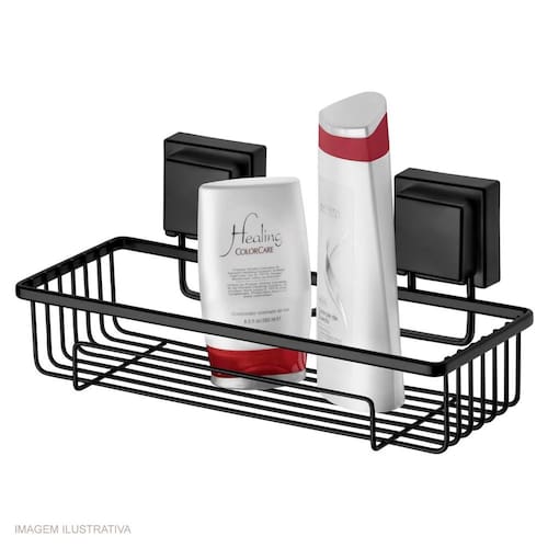 O Suporte para Shampoo Future com Ventosa Preto Fosco conta com a fixação por ventosas. Pode ser utilizado dentro do box com shampoos e condicionadores, mas também próximo à pia do banheiro, com seus cremes hidratantes e demais itens de beleza. Sofisticação através do detalhe em aço Piatina (em formato achatado). Acabamento liso e fosco. A pintura a pó aplicada na peça garante uma excelente cobertura protetiva contra corrosão e alta resistência ao impacto.