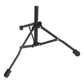 Seu tripé possui borrachas antiderrapantes e seu tubo de suporte conta com regulagem de altura, podendo chegar até 135 cm em seu tamanho máximo.