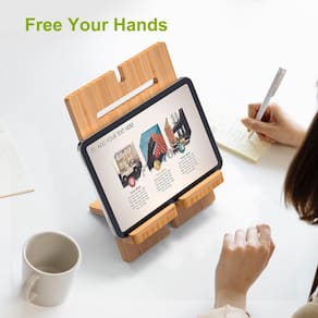 - Bambu com design elegante e bonito: o suporte para tablet é feito de bambu com design bonito, exclusivo e patenteado elegante, durável para proteger melhor seu dispositivo inteligente de arranhões