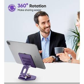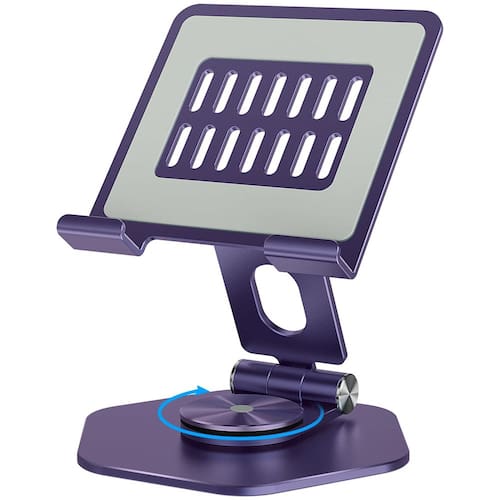 Suporte de tablet para mesa, suporte giratório para iPad com base giratória 360, suporte de mesa dobrável de alumínio.