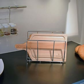 O suporte de tábuas duplo chegou para auxiliar sua organização e otimização de espaço na cozinha. Com design diferenciado e acabamento em alto brilho, o organizador de tábua de carne pode ser armazenado dentro do móvel ou sobre a bancada. Garanta beleza e funcionalidade com suportes de qualidade com esse aramado suporte para tábua de corte.