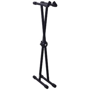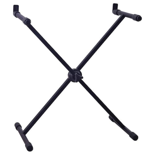 O suporte para teclados x10 possui estrutura em “x” com regulagem de altura, base e apoios em ferro e pintura eletrostática Menor que o x30, geralmente é usado na posição sentado, leve e pratico Capacidade 15 kg Peso 2,6 kg Dimensões comp. 43; alt. 92; larg. 12 cm