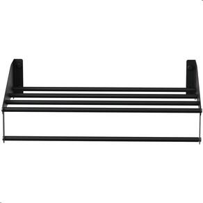 ESPECIFICAÇÕES TÉCNICAS Material das Laterais: Aço inox Material dos Tubos: Alumínio Acabamento: Pintura Eletrostática Epóxi Cor: Preto Dimensões: Altura 8,5 x Largura 40,5 x Profundidade 25 Peso: 590g Fixação: Parafusos e buchas inclusos Uso indicado: Residencial e comercial hotéis, pousadas, etc.