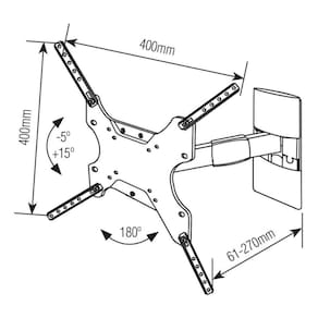 Suporte Articulado para TV LCD, LED, Plasma, 3D e Smart TV de 23 até 55 polegadas (com VESA máximo de 400x400mm). Permite inclinação, articulação e rotação (3 movimentos). Possibilita ajustar a TV para assistir de vários ângulos. Ideal para salas, escritórios, quartos, hospitais, restaurantes, entre outros locais.