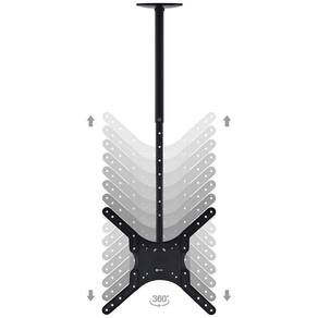 Possui braço ajustável, com pode deixar o televisor de 65 a até 95mm de distância do teto.
