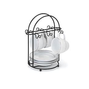 Suporte para Xícaras de Café Arthi Black - Organização Vertical O Suporte para Xícaras de Café da Arthi combina funcionalidade com a estética moderna da Linha Black Life. É o acessório perfeito para organizar e exibir suas xícaras verticalmente, liberando espaço valioso na bancada ou no armário da sua cozinha. Características Físicas e Funcionais: Design Moderno: Acabamento em pintura epóxi na cor preta sobre aço carbono, que confere um visual clean, sofisticado e resistente à umidade e corrosão. Organização Vertical: Projetado para pendurar suas xícaras, utilizando a altura e mantendo-as acessíveis e organizadas perto da sua máquina de café. Design de Mesa/Bancada: Estrutura estável, perfeita para ser utilizada em qualquer superfície plana. Durabilidade: O revestimento em pintura epóxi garante maior vida útil e facilita a limpeza. Marca: Arthi (Ref. 2463). Especificações Técnicas: Funcionalidade: Suporte para xícaras de café. Cor: Preto Dimensões: Comprimento 16,7 X Largura 13 X Altura 21,7 cm Material: Aço Carbono com Acabamento em Pintura Epóxi (Preto)