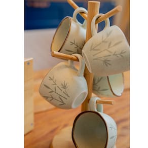 Suporte Para Xícaras Em Bambu Ecokitchen 15x34cm Mimo Style - Características Gerais do Produto: • Dimensões: Ø 15x34cm • Material Principal: Bambu • Linha: Ecokitchen • Informações Adicionais: Lave o produto com esponja macia e sabão neutro, enxague com água abundante; Não deixe de molho (submerso) na água; Não lavar em máquina de lava-louças; Para evitar o aparecimento de fungos e bactérias, seque imediatamente após a lavagem; Guarde em local seco e arejado