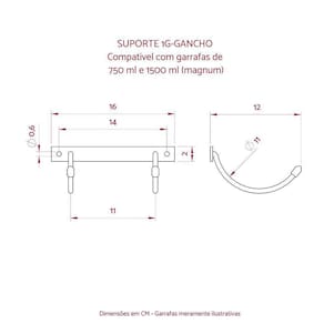 Suporte Parede Garrafa Vinho Garrafeiros 1G-Gancho -Kit 5