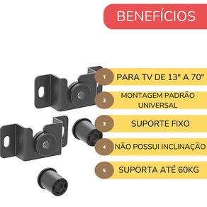 • Estabilidade: Seu design fixo garante segurança e estabilidade máximas para sua TV, proporcionando tranquilidade durante o uso.