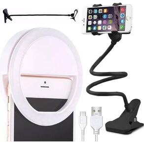 Suporte Pescoço Ganso Flexível Celular Universal Ring Light Kit youtuber suporte articulado pescoço ganso flexível celular universal + luz led flash ring light selfie recarregável Kit youtuber com eletrônica Kit 2 em 1 suporte articulado + mini flash ring light recarregável Kit profissional,completo,de qualidade e com eletrônica.São itens para melhor qualidade de seus vídeos e fotos. O kit contém: 1 flash selfie recarregável com cabo para recarga 1 suporte universal celular articulado Suporte universal celular articulado -tamanho da aste: aproximadamente 60 cm -abertura para o aparelho: +- 09 cm -abertura de fixação : +- 04 cm Suporte universal articulado para celular/smartphone, gps.Compatível com aparelhos samsung, , motorola entre outras marcas.Projetado com duplo grampo e o dobro de segurança para seu aparelho.Com o suporte articulado flexível pescoço de ganso, você pode ajustar livremente o melhor ângulo de visão, inclusive giera 360 graus.Interior macio com almofada de borracha para fornecer a segurança extra para seu aparelho.Apropriado para todos os tipos de celulares, gps, e de outros equipamentos. Pode ser utilizado na cama, mesa, cozinha, no escritório e em qualquer superfície onde possa prender o grampo, ou seja, você irá fixá-loem qualquer lugar que deseje.Assim poderá utilizar seu equipamento para reproduzir músicas, realizar chamadas ou visualizar filmes e fotos. Flash selfie ring light recarregável Clipe com feixes de led para adaptar em tablets, smartphones, notebook ou aonde quer que seja.O clipe funciona com bateria interna, carregado por um cabo usb, com 3 níveis diferentes de led; fraco, médio e forte. Utilize como desejar -mude a iluminação de suas selfies com essa incrível novidade e registre os momentos únicos com mais luz e brilho. -iluminação forte porem não danifica sua visão, pode ser transportado facilmente no bolso ou qualquer outro compartimento Compatível: o clipe é universal, sem restrições. Pode ser até que sua abertura para prender seja compatível; em geral, o clipe é compatível com a grande maioria de smartphones e alguns tablets. Especificações: - 3 ajustes de cor: baixo, médio e forte - luz branca fria - temperatura da cor: 5000k - 7000k .
