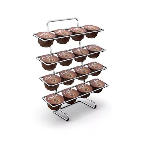 Suporte organizador de cápsulas de café descartáveis Dolce Gusto. Fabricado em aço cromado com capacidade de até 16 cápsulas. Mantenha sua cozinha organizada e com estes itens sempre acessíveis próximos a sua cafeteira. Elegante e discreto. Pode ser utilizada na copa, cozinha ou até mesmo em seu escritório. Dimensões 26,5 x 22 x 12,5 cm. Cor prateada. As imagens são apenas ilustrativas, as cápsulas não acompanham o suporte. Não acompanha qualquer tipo de acessório. Validade indeterminada. Garantia do fabricante por 90 dias. Ean: 7897996715208